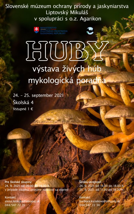 Milí návštevníci, pozývame Vás do Slovenského múzea ochrany prírody a jaskyniarstva v Liptovskom Mikuláši, Ul. Školská 4 na výstavu živých húb a mykologickú poradňu, ktorá sa uskutoční v dňoch 24. septembra 2021 v čase od 14.00 do 18.00 h a 25. septembra 2021 v čase od 11.00 – 18.00 h s posledným vstupom počas obidvoch dni o 17.30 h