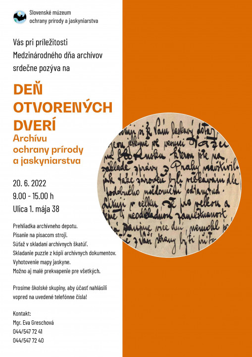 K tejto iniciatíve sa pripájame aj my. Širokej verejnosti ponúkame návštevu Archívu ochrany prírody a jaskyniarstva, ktorý sa nachádza v priestoroch Slovenského múzea ochrany prírody a jaskyniarstva na Ul. 1. mája 38.