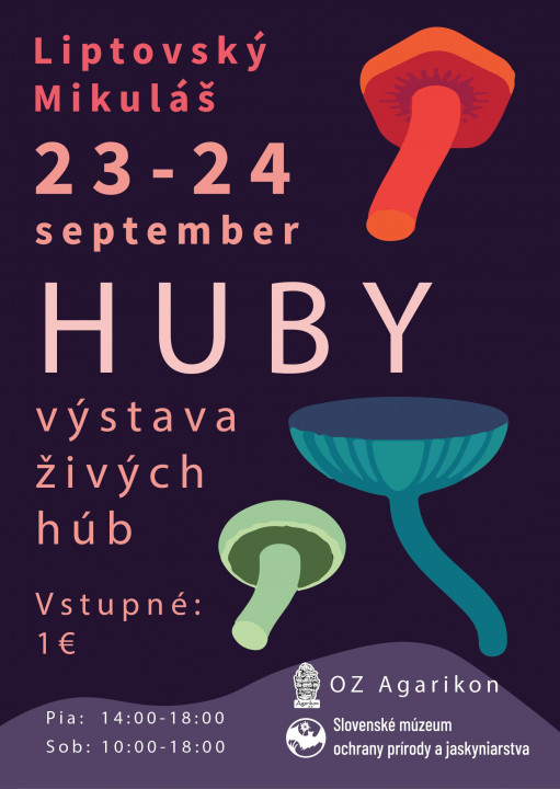 Pozývame Vás na výstavu živých húb spojenú s mykologickou poradňou, ktorá sa bude konať počas dvoch dní 23. a 24. septembra 2022 v priestoroch Slovenského múzea ochrany prírody a jaskyniarstva v Liptovskom Mikuláši na Školskej ul. 4.