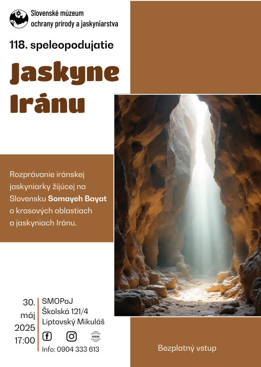Príďte si vypočuť zaujímavé rozprávanie iránskej jaskyniarky Somayeh Bayat žijúcej na Slovensku, ktoré nás prenesie do pozoruhodných krasových oblastí a jaskýň tejto vzdialenej krajiny.